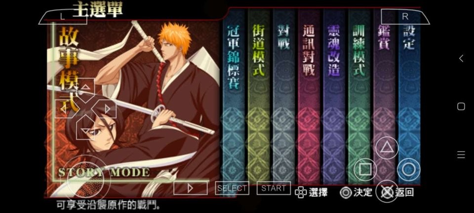进入游戏-->按"START键"-->游戏封面按"START键"再按一次"START键"-->游戏主菜单界面,摇杆选择"故事模式"按○键-->出现"继续游戏""全新游戏"摇杆选择"全新游戏"按○键-->出现"死神代行篇"按○键,再按一次○键-->出现"Start""Story"摇杆选择"Start"按○键即可开始游戏,新手建议先完成教学模式。