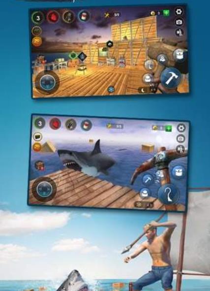 游戏中的海洋世界广阔而神秘,玩家可以驾驶自建木筏自由探索,发现隐藏在蔚蓝海水中的神秘岛屿和古老沉船。这些地点往往藏有珍贵的稀有资源,能够帮助玩家更好地发展自己的海上家园。从最初简陋的木筏,到后期装备齐全的海上堡垒,玩家将亲身经历从无到有的建造乐趣。同时,游戏中凶猛的鲨鱼会定期袭击木筏,玩家需要制作各种武器和防御设施来保护自己的生存空间。