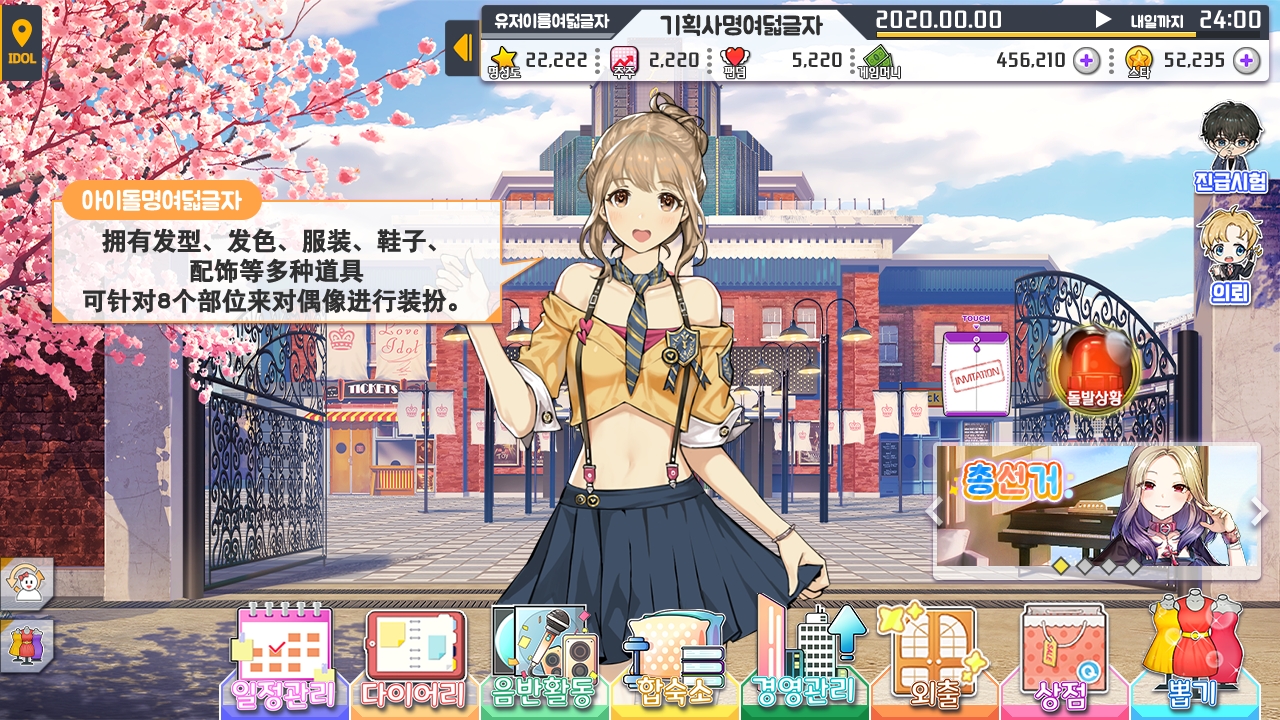 游戏提供了高度自由的玩法体验,玩家可以打造专属的梦幻舞台,通过实时3D渲染技术呈现震撼的演出效果。完善的培养系统包含数十种训练课程,从基础的发声练习到高难度的编舞设计应有尽有。细致的日程管理系统让玩家能够精确安排每位艺人的训练、演出、休息时间。随着公司规模扩大,玩家还可以投资建设录音棚、舞蹈室等专业设施,甚至开设海外分公司,将偶像组合推向国际市场。