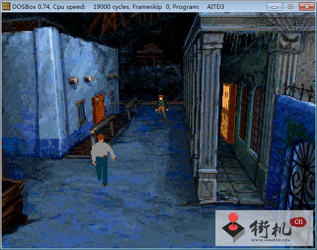 《Alone in the Dark 3》是一款经典的恐怖冒险游戏,它以其独特的视角和紧张刺激的玩法而受到玩家的喜爱。动雕像左边的角有一扇暗门打开,跟着跑出一名武器手,解决他。