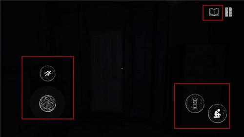3、左边的按钮可以角色进行移动跳跃,右边的按钮可以打开手电,控制角色蹲下等。