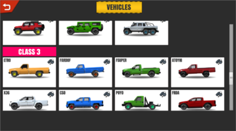 1、进入项目越野3游戏主页面的“vehicles”车辆界面。