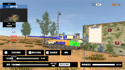 6、试车场:驾驶当前的载具进入试车场。可自定义靶车、测试坦克的性能与提升自己的作战能力。