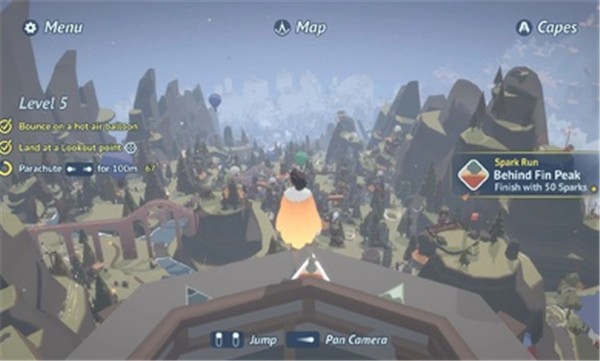 用大胆的方式飞行,增强你的飞行能力。 只要靠近热气球和雪坡等各种物件飞行,即可吸收岛屿的能量来持续快速飞行。 如果你感觉能量减少,那就飞低一点并靠近周遭环境,借此收集火花来加速吧。