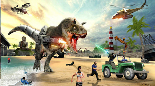 与各种人类的先进武装力量作战。用你的终极战斗恐龙打败他们。