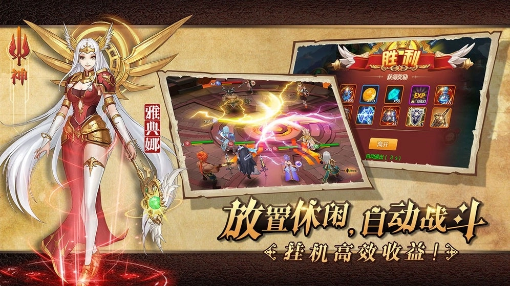 1.无需操作,放置英雄技能全自动释放,离线挂机也会有收益,不肝不氪,轻松游戏。