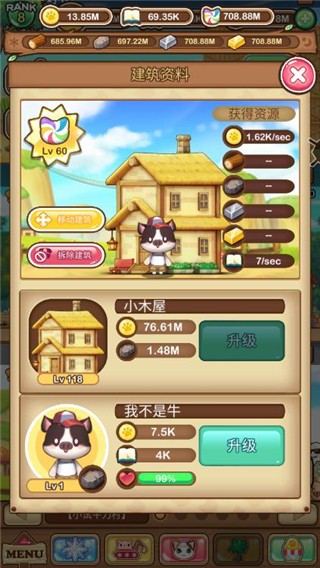 闲置游戏,升级不同建筑以解锁更多特别财富,招募不同的热门动物,成为你的伙伴协助管理你的村落。