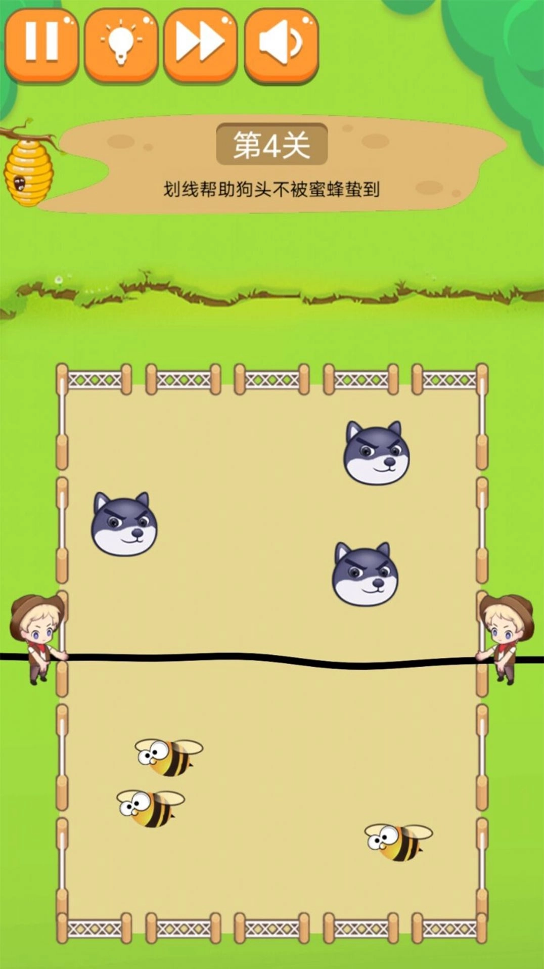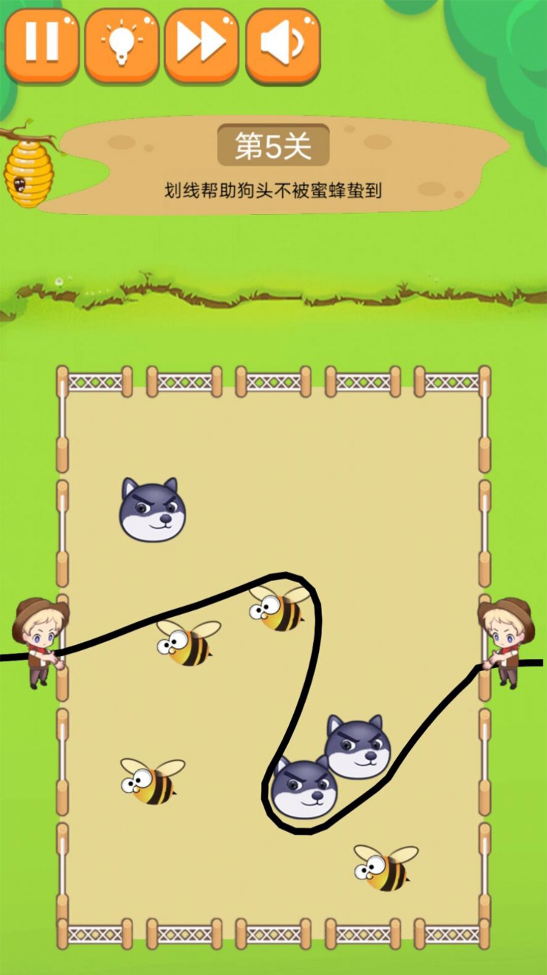 1.画线救狗头肿了还是经典的狗头玩法,保护狗头不被蜜蜂蛰;