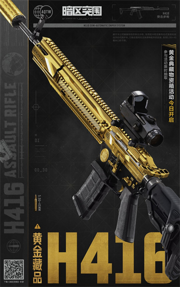 【黄金藏品H416】涂装也已上架,我们为这把暗区中顶尖的“5.56”发射器带来了美感与威慑力并存的全新外观。黑与金的主配色,这高级感可以说是拿捏住了!