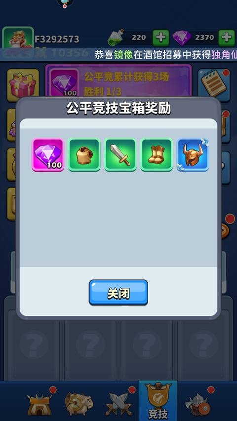 1、公平竞技玩法,奖励分为两种,一种为实时对战获得的宝箱奖励,打开后可以获取宝石和装备豪礼~