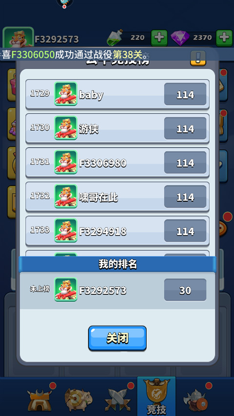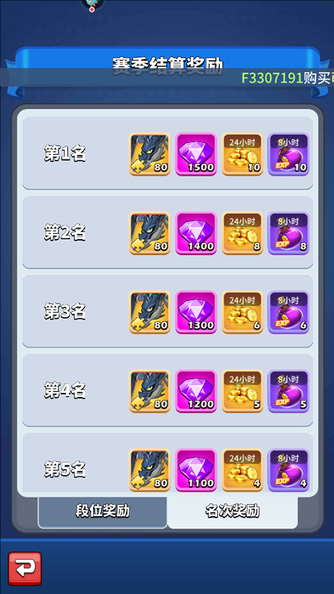 ps:本玩法是一个赛季玩法,每个赛季内会有段位记录以及段位排行,排行榜会展示实时个人排名,以及前三玩家的信息