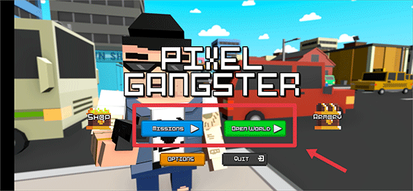 1. 打开游戏,在游戏首页挑选一种模式进行游玩,其中missions是关卡模式,open world是开放世界。