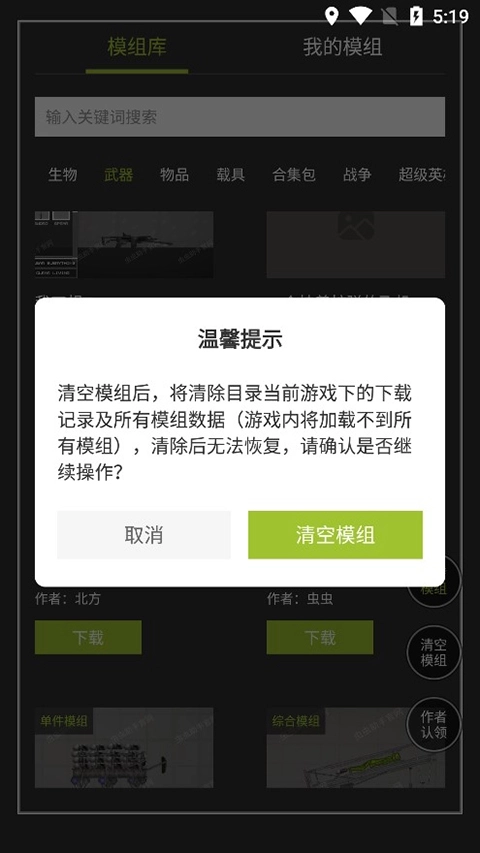 3、软件内有大量的模组资源可以下载,根据自己的需要,选择适合自己的模组,在游戏中打造自己想要的世界;