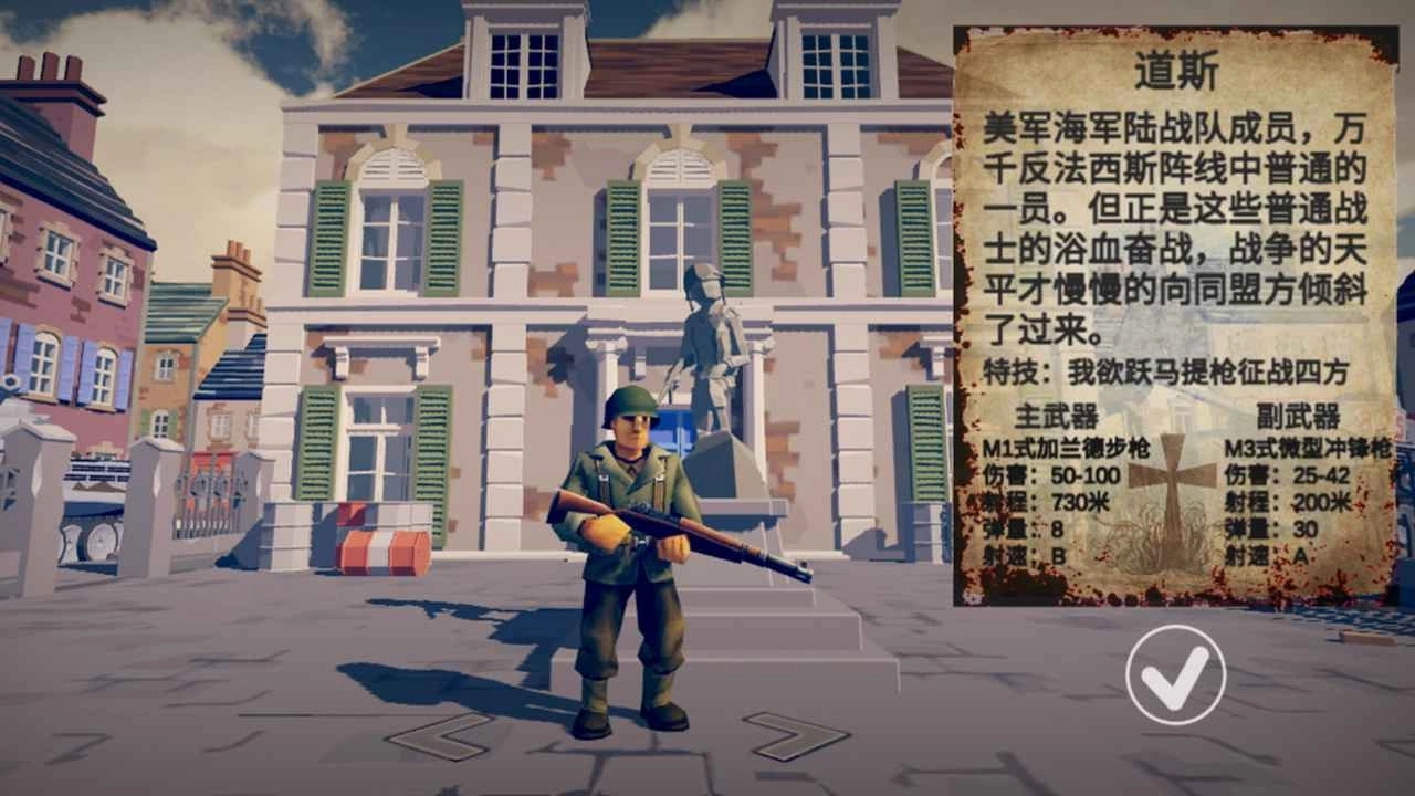 人物比例比较偏大头娃娃的卡通造型,但是身上的细节物品又比较尊重史实,基本是严格按照二战真实的单兵装具设计的,没有发现明显穿越的神剧服装造型。光影效果也采用了有些怀旧色彩的素绘效果,更好的体现了一些年代感。