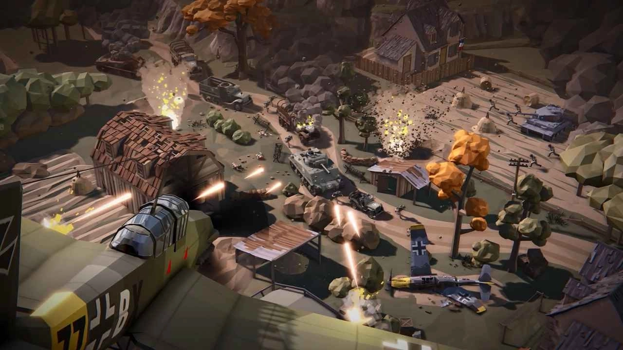 1、游戏采用低多边卡通风格,提供多种经典的枪械、坦克、载具、战机。