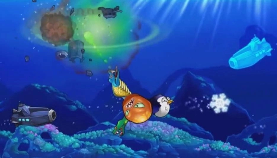 4、画面采用卡通游戏风格,其中可爱的变异章鱼,营造出十分轻松休闲的游戏体验。