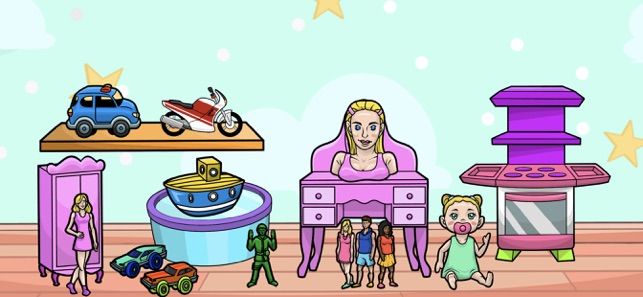 2、游戏里精心打造了诸多趣味场景供玩家冒险,像卧房、客厅、厨房等。此外,还有各式各样孩子们喜爱的玩具模型,充满趣味。