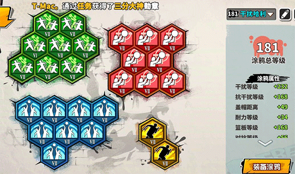 温馨提示:要是觉得像帽后仰这类投篮动作难度较高,不妨选用三帽距和五干扰的涂鸦;要是走位技术出色,满干扰(七级干扰涂鸦搭配帽距)是个不错的选择。此外,在当前版本中,不太建议哈莉携带抗盖帽涂鸦。这主要是由于哈莉的抗盖帽基础属性仅为235,且当下主流的PG训练营都侧重于选择盖帽值,因此对哈莉而言,推抗盖帽的实际意义并不大。