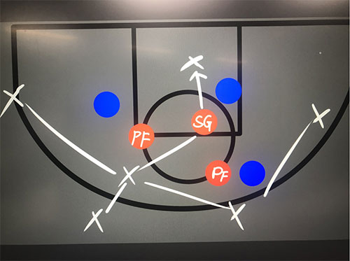 进攻时双PF给SG 弧顶Z形挡拆,由SG主攻,玩SG的脑子很关键要会跳,没机会就传进攻位置好PF寻找机会。