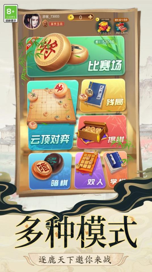 1. 可选择单机模式,也能选择联网对战,由此开启一场场精彩纷呈的象棋对决。