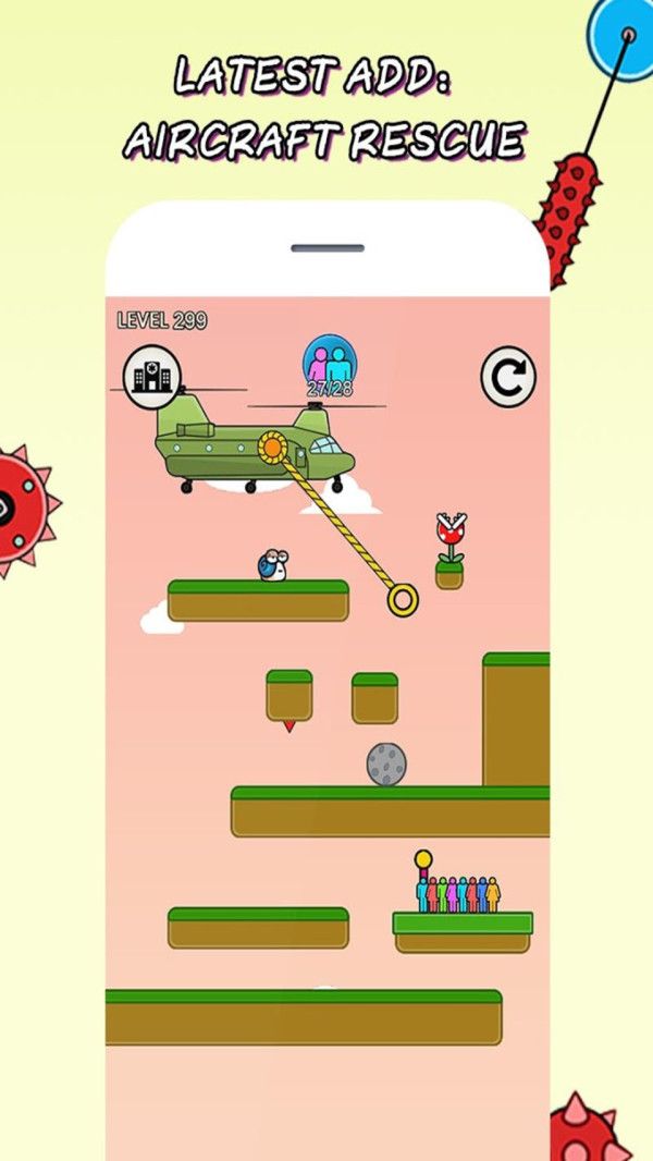 1. 全新设计的绳索游戏,此次你要拯救的人数增多,面临更为艰巨的挑战,需策略规划逃离路线。