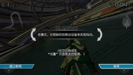 2、转向:依靠左、右倾斜你的移动设备来实现转向(你可以在“设置”中更改方式);