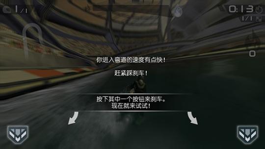 4、刹车:界面中有两个刹车按钮,随便按,都可以刹车,常用于弯道;