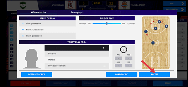 8、若分数处于落后状态,游戏会弹出比赛策略,玩家能够自主选择诸如防守或进攻之类的战术。