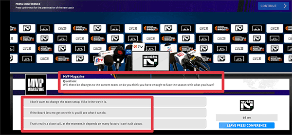 2、全部选择完后,需要召开记者会,这是玩家只需要根据记者的问题在下方选择你的回答即可