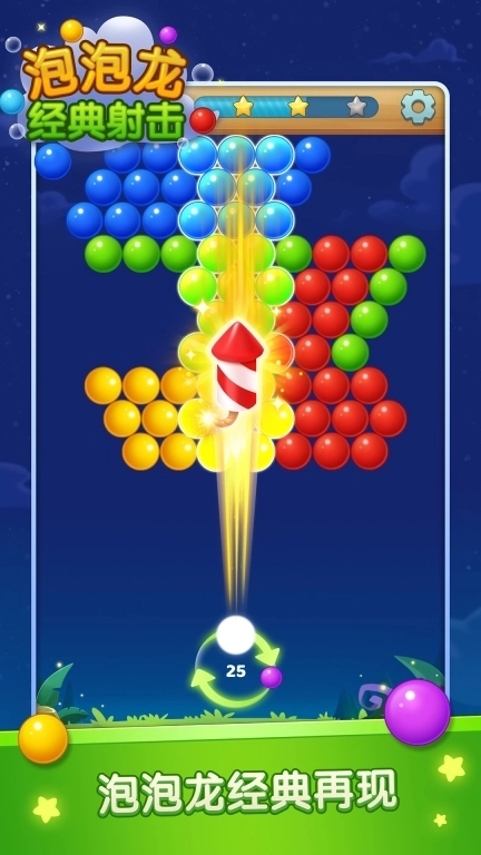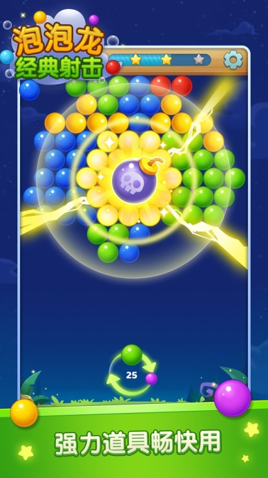 《泡泡龙经典射击》是一款极具趣味性与挑战性的游戏。简单易上手的操作,适合各年龄段玩家。丰富多样的关卡设计,不断带来新的挑战,让人欲罢不能。色彩绚丽的泡泡特效,营造出欢快氛围。它承载了许多人的童年回忆,是一款历久弥新的经典之作。