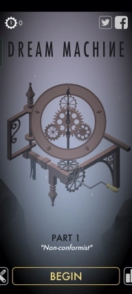 造梦机器人游戏,也叫Dream Machine ,是一款类似《纪念碑谷》的益智解谜游戏。和《纪念碑谷》一样,这款游戏画面精美,音效与背景音乐独特,人物造型Q萌,关卡设计精巧,手绘画风美不胜收,还包含大量3D解谜谜题。不知哪天,或许是程序出错,或许是人为疏忽,这个机器人挣脱了如铁链般的流水线,开始有了自己的想法与梦想。为帮机器人实现梦想,玩家要依据场景中的可操作机器齿轮转动方向,助力机器人完成关卡挑战。