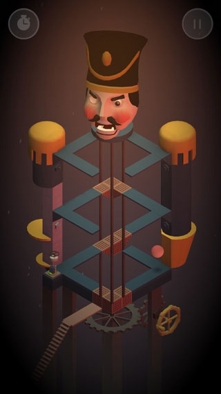 造梦机器人,英文名Dream Machine,从意译角度看,它宛如如梦似幻般的机器,极为贴切地诠释了这样一个小机器人:它超脱现实物理法则,于现实与错觉间徘徊游离,在纷繁复杂的机关搭建中探寻终点,实现自我救赎。在这款游戏里,主角是一个可怜的发条机器人,由于工作时突发短路故障,它被无情地扔到了废品堆。苏醒后的机器人必须依靠自身智慧,一道道机关,逃离那阴冷黑暗的工厂。虽说游戏中或许能看到一些《纪念碑谷》的影子,但不可否认,单就关卡的丰富程度以及难度而言,这款游戏比起《纪念碑谷》有过之而无不及。