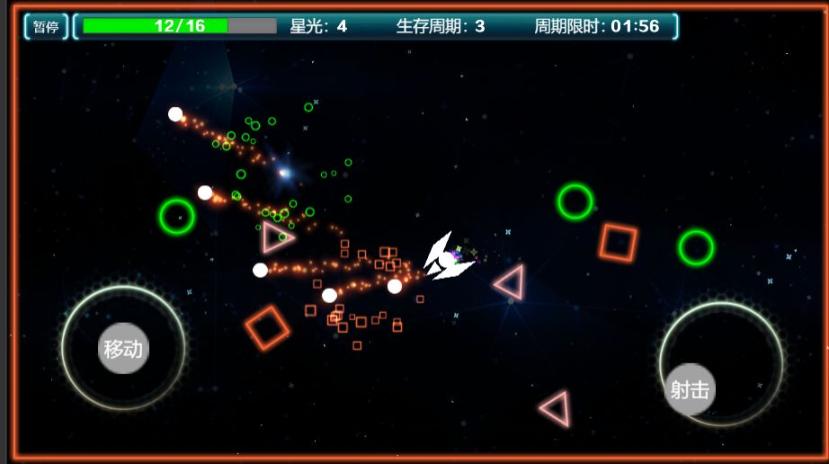 尤其唯一的可看点就是他的画面效果,他想给我们看的不是他的美术制作如何,而是他自己设加的buff效果层层叠加的画面特效,说起特效,其实也就是一些由点线面组成的线条和小球而已,从美术本身出发来看确实不算出色,但是他就是想通过不同的攻击方式来吸引人,到了后面满屏的攻击让玩家觉得很爽,这就达到游戏的目的了,如果只是图一爽的话我觉得可以来试试这款游戏,深层效果叠加的那一瞬间简直上天。但是我觉得从长远来考虑的话,大多数玩家还是不会对这款游戏感兴趣的。
