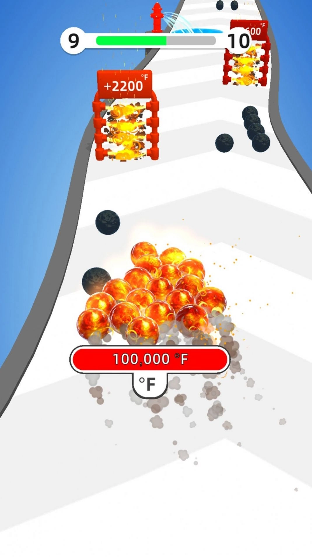 2、你收集到的球球会与你当前的球球温度保持一致!最终目标是冲向终点,看看谁的球球能滚得最远!