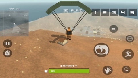 2、跳出飞机降落伞进入游戏。收集枪支,刀具,防弹背心,头盔和配件。生存的最终胜利!没有规则!