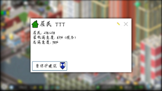 2、建筑也有需求。你可以点开建筑,会显示两个百分比%,最低要求不讲,另外一个是当下满足的百分比,一般来说,当下满足的百分比后面有个括号,括号里是你需要满足的条件。低级建筑需求的百分比比较低,高级建筑需要满足的百分比比较高,如果当下百分比低于最低百分比,那么建筑人就会走,人走完后建筑变黑。