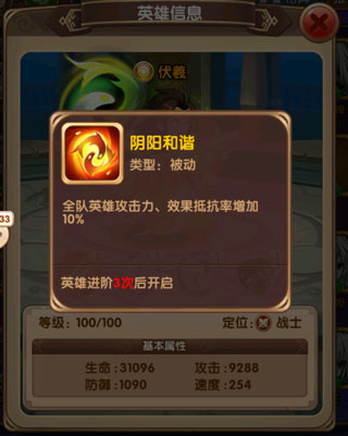 达到指定条件后激活,加全体上阵英雄的属性,并且增加各种玩法的挑战次数(图标幸好不是绿色的,策划保留了最后的一点人性)