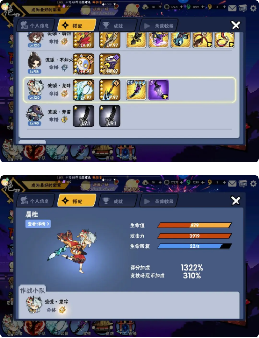 小队只上场测试忍者洛青,鬼族专精,五命+500对鬼族攻击力,天赋对鬼族加成只有忍术,忽略。面板3789,宝物只带刀鞘和a的冷却剑豪,武器使用一次性伤害特性武器:天晶苦无,凑了一对多余的5+4会追,卸下人咒印。因此对鬼族的武器攻击力:3789+500+399=4688