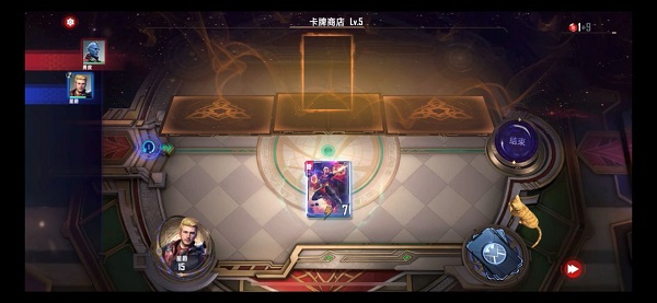 然后锁定卡池,等下一回合购买科恩格(打出:选择一个防御型角色+14护甲)。