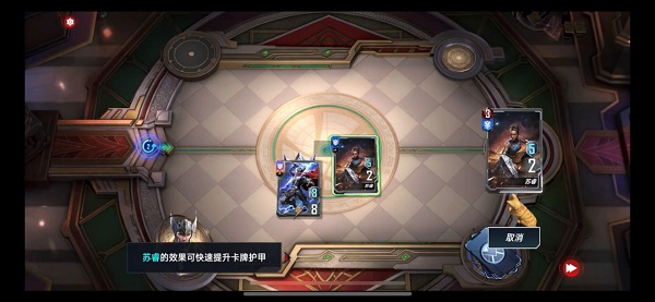 购买苏睿(打出:选择一个防御型角色+5护甲)状态给到索尔放置放置右侧。