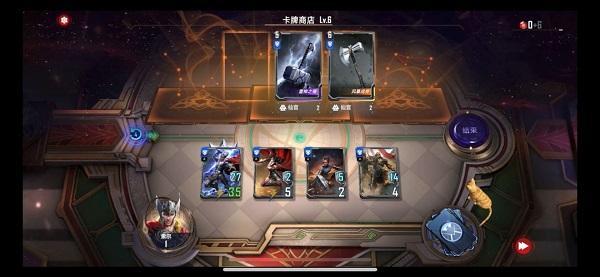 购买雷暴(选择一个角色,每有1点护甲,就+1点战斗力,持续到下一场战斗结束)状态给到索尔。
