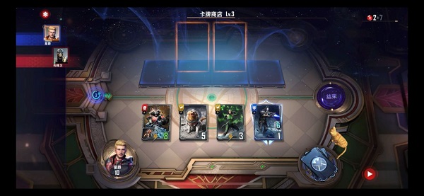 购买星鹰(特性是凯旋 战斗胜利后,商店里的“银河护卫队 ”卡牌价格-2)。