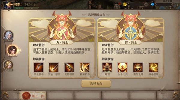 4、通过转职,确定各个角色在冒险者小队中的分工和位置,搭配阵容,学习技能,组建起一支独属于你的多角色小队。