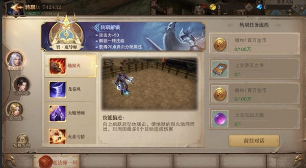 1、每个角色达到一定等级时,将遭遇当前职业的瓶颈,开启一转、二转、三转的转职任务。