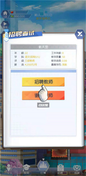 5、然后再点击教师按钮,将招聘而来的老师进行进修改造;