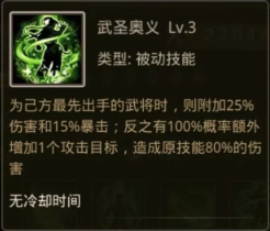 关羽四技能“武圣奥义”,能够为“己方最先出手的武将,附加25%伤害和15%暴击......”。关羽本身有一定的输出收割能力,这个开场buff能够配合郭嘉的四技能增强队伍的续航能力。不过,比较吃速度,这点要注意。