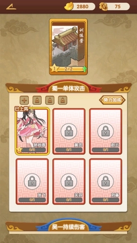 1、塔防的战斗:可以派你的武将来送到战斗塔中,尽情的享受前来送死的敌军。