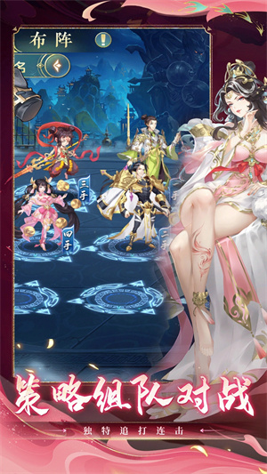 游戏属于回合类机制,站位分九个位置,一共能上阵四位仙友,按站位顺序排序先后,顺序是从右至左,从上至下,布阵位的顺序决定了各个仙友获得的阵位速度加成,顺位越高速度加成越高。