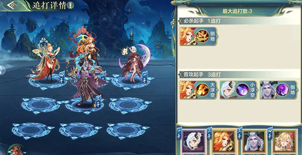多个仙友之间可以连续配合,除了【大浮空】效果,还会有【倒地】、【小浮空】【击退】效果,合理搭配可以完成2、3、4甚至更多的追打连击。