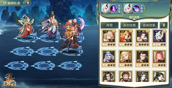 例如,第一位仙友的必杀系技能可以对敌方造成【大浮空】效果,第二位仙友的追击系技能刚好可以接【大浮空】效果,那么第一位仙友打出【大浮空效果】后,第二位仙友就会进行一次追打连击。